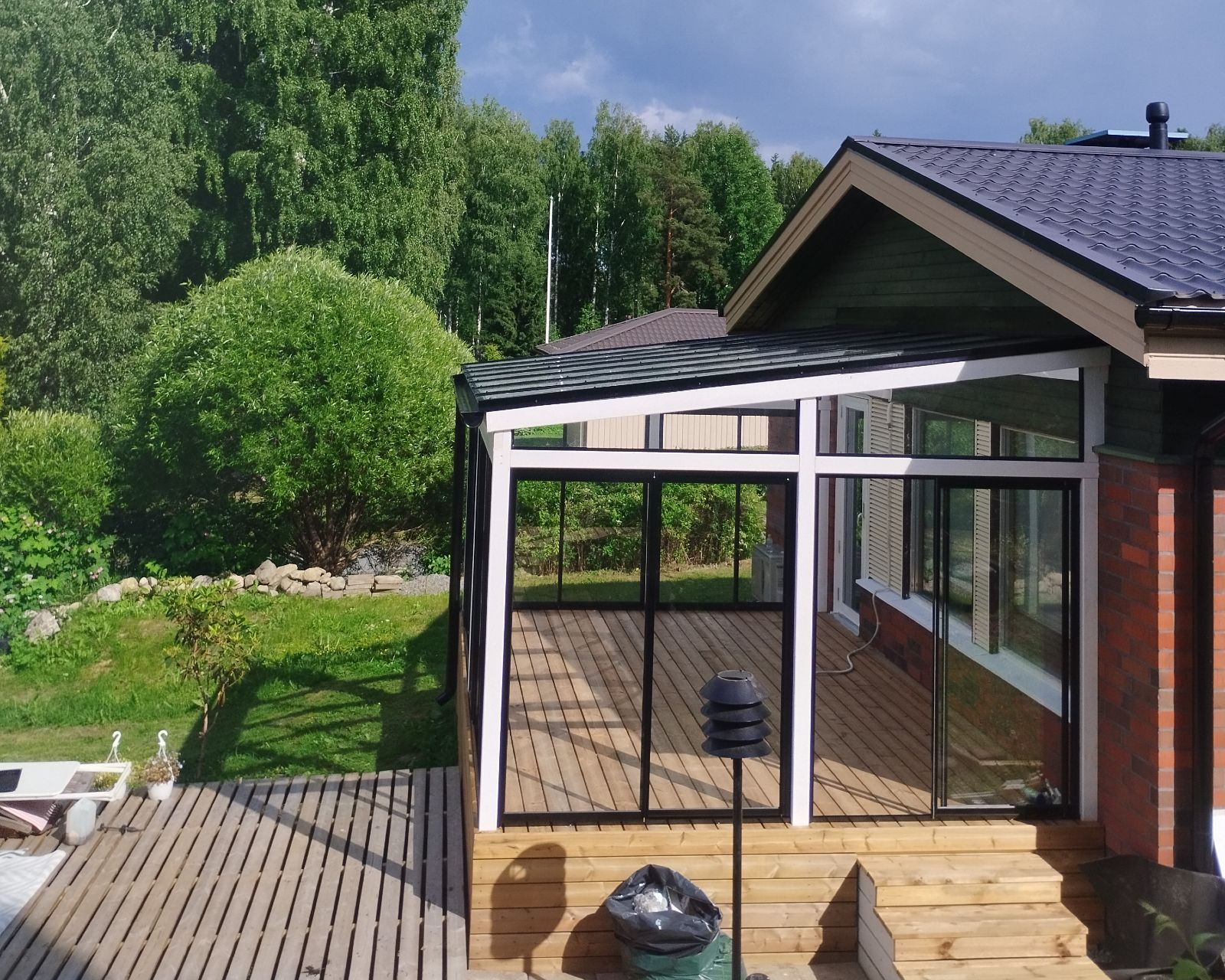 Unohda sääolosuhteiden aiheuttamat huolet ja nauti terassista ympäri vuoden lasituksen avulla. Terassin lasitus tarjoaa sinulle mahdollisuuden luoda tilan, jossa voit nauttia raikkaasta ilmasta ja auringonvalosta ympäri vuoden, ilman sateen tai kylmän tuulen häiriöitä.